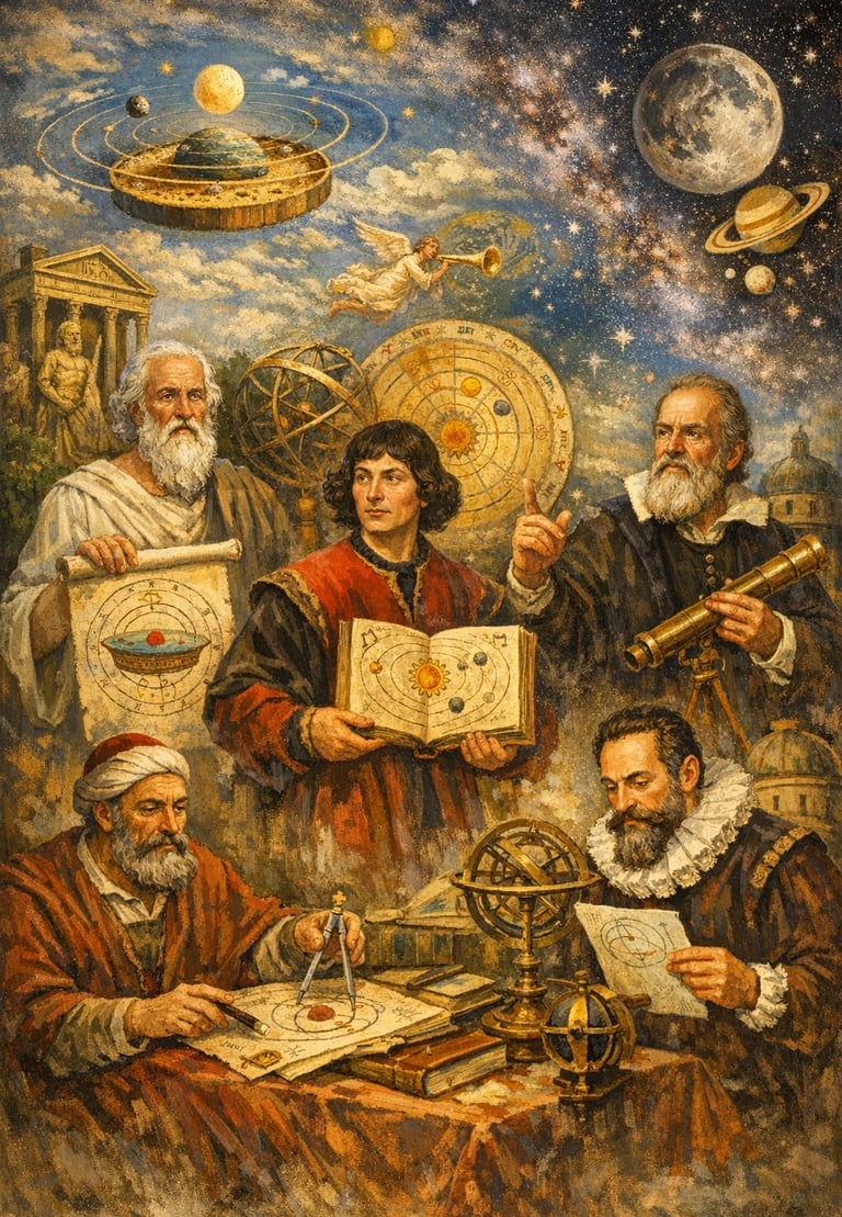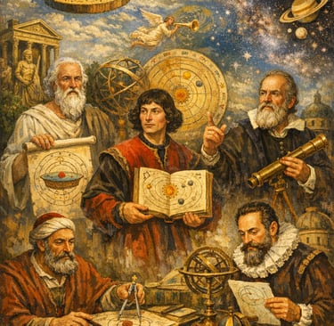 Lo sviluppo dell'astronomia dagli antichi Greci a Galileo Galilei segna un'evoluzione cruciale nella nostra comprensione dell'universo. Gli antichi Greci gettarono le basi del pensiero astronomico, con figure come Eudosso,Platone, Aristotele e poi Tolomeo che articolarono il modello geocentrico, che poneva la Terra al centro dell'universo. Questo modello, racchiuso nell'Almagesto di Tolomeo, dominò il pensiero astronomico per oltre un millennio. Tuttavia, i Greci introdussero anche un approccio sistematico all'osservazione e alla matematica. Cercarono di spiegare i fenomeni celesti attraverso la geometria, e filosofi come Aristotele proposero che i cieli fossero perfetti e immutabili, un'idea che persistette per secoli. Il Medioevo vide la conservazione e l'interpretazione dei testi greci da parte degli studiosi islamici, che non solo preservarono questa conoscenza, ma apportarono anche significativi progressi. Astronomi come Al-Khwarizmi e Al-Battani perfezionarono le tavole astronomiche e introdussero nuove tecniche di calcolo, aprendo la strada a futuri sviluppi. Il passaggio all'epoca rinascimentale annunciò una rivoluzione nel pensiero astronomico. Niccolò Copernico sfidò il modello geocentrico con la sua teoria eliocentrica, suggerendo che il Sole si trovasse al centro dell'universo e che la Terra e gli altri pianeti gli ruotassero attorno. Questa idea radicale, presentata nel "De revolutionibus orbium coelestium", gettò le basi dell'astronomia moderna, ma incontrò la resistenza delle autorità consolidate. Galileo Galilei, spesso considerato il padre dell'astronomia osservativa moderna, si basò sulle idee copernicane utilizzando un telescopio, uno strumento che trasformò il campo. Le sue osservazioni all'inizio del XVII secolo rivelarono le lune in orbita attorno a Giove, le fasi di Venere e dettagli della superficie lunare. Queste scoperte fornirono prove convincenti contro il modello geocentrico e supportarono la visione eliocentrica. L'insistenza di Galileo sull'osservazione e la sperimentazione, unita al suo approccio innovativo alla scienza, mise in discussione le norme di indagine consolidate. Il suo lavoro non solo fece progredire la conoscenza astronomica, ma segnò anche un significativo cambiamento nel metodo scientifico, privilegiando l'evidenza empirica rispetto alla speculazione filosofica. In sintesi, l'evoluzione dell'astronomia dagli antichi Greci a Galileo illustra una profonda trasformazione nella nostra comprensione del cosmo. Dai primi modelli geocentrici alle sfide pionieristiche di Copernico e alle scoperte osservative di Galileo, questo periodo ha gettato le basi per la scienza moderna, cambiando per sempre la prospettiva dell'umanità sul proprio posto nell'universo.